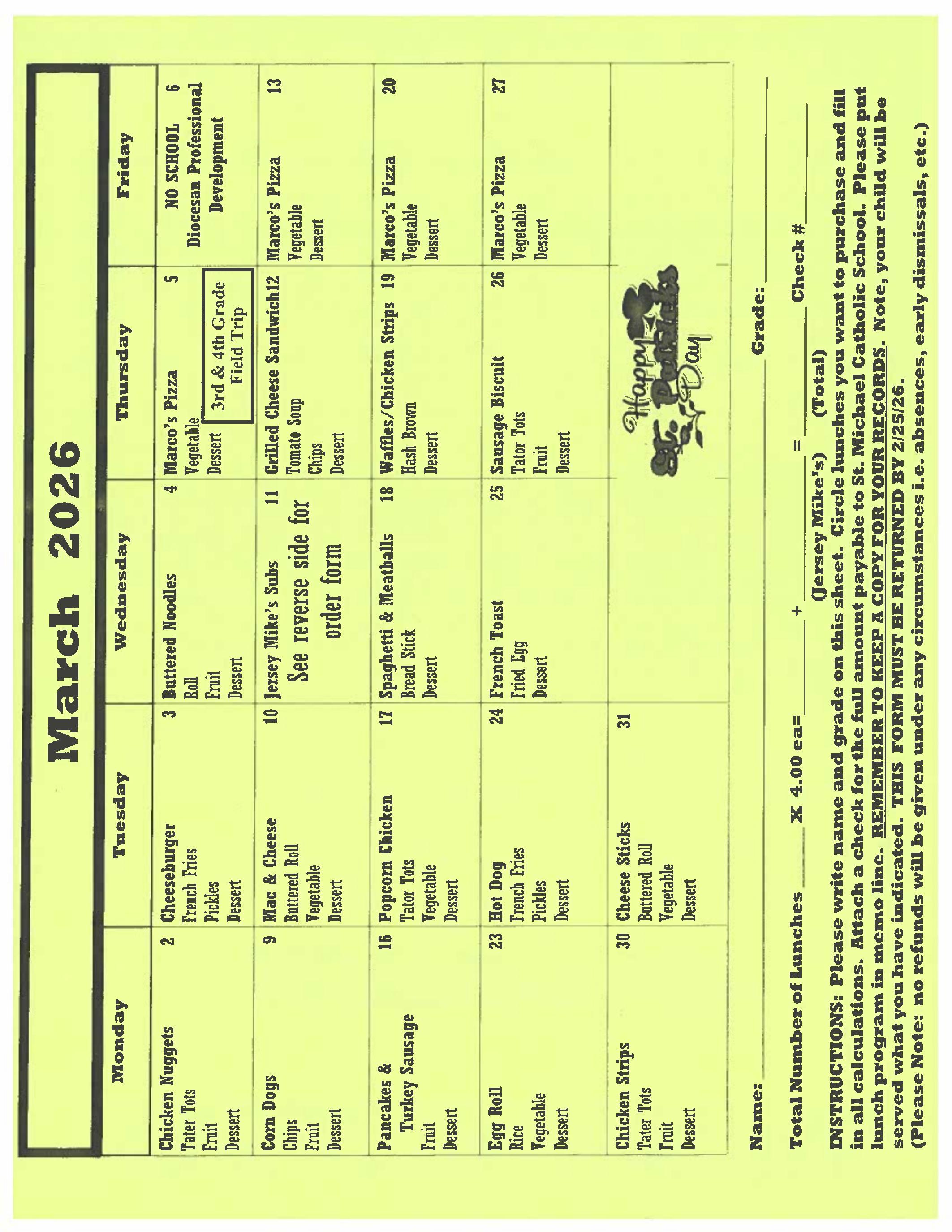 for the March Lunch Menu